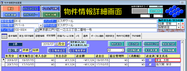④[収支情報追加]ボタンで収支レコードを追加すると、新家主宛になります。