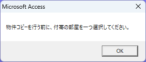 「物件コピーを行う前に、付帯の部屋を一つ選択してください」