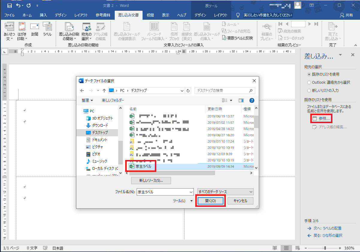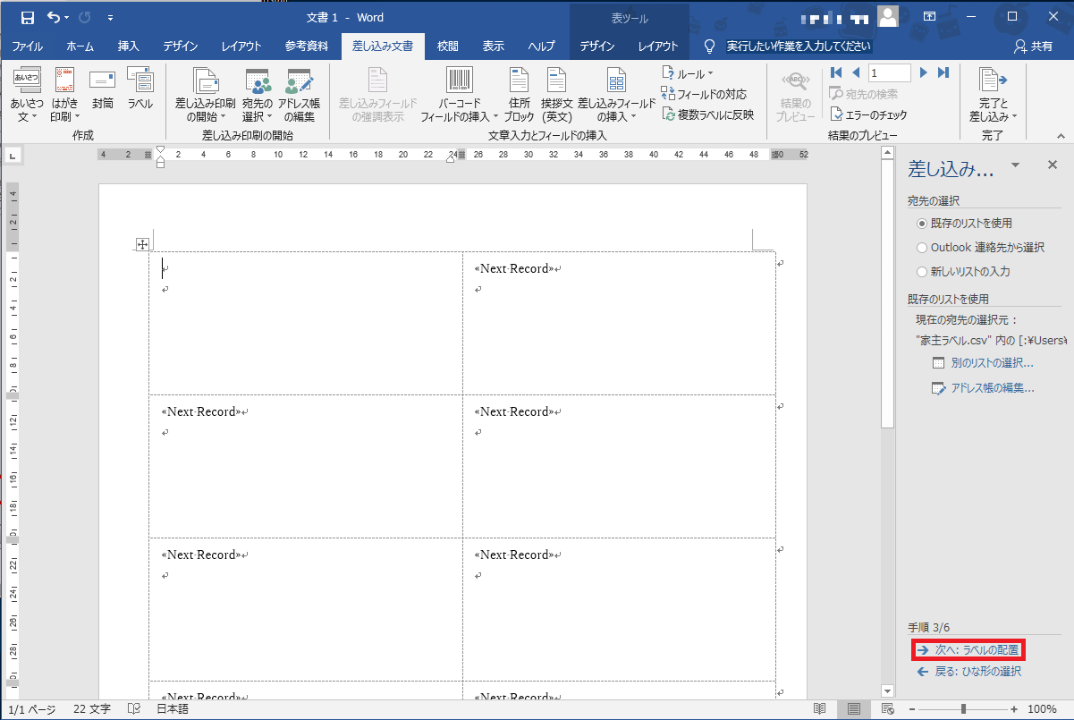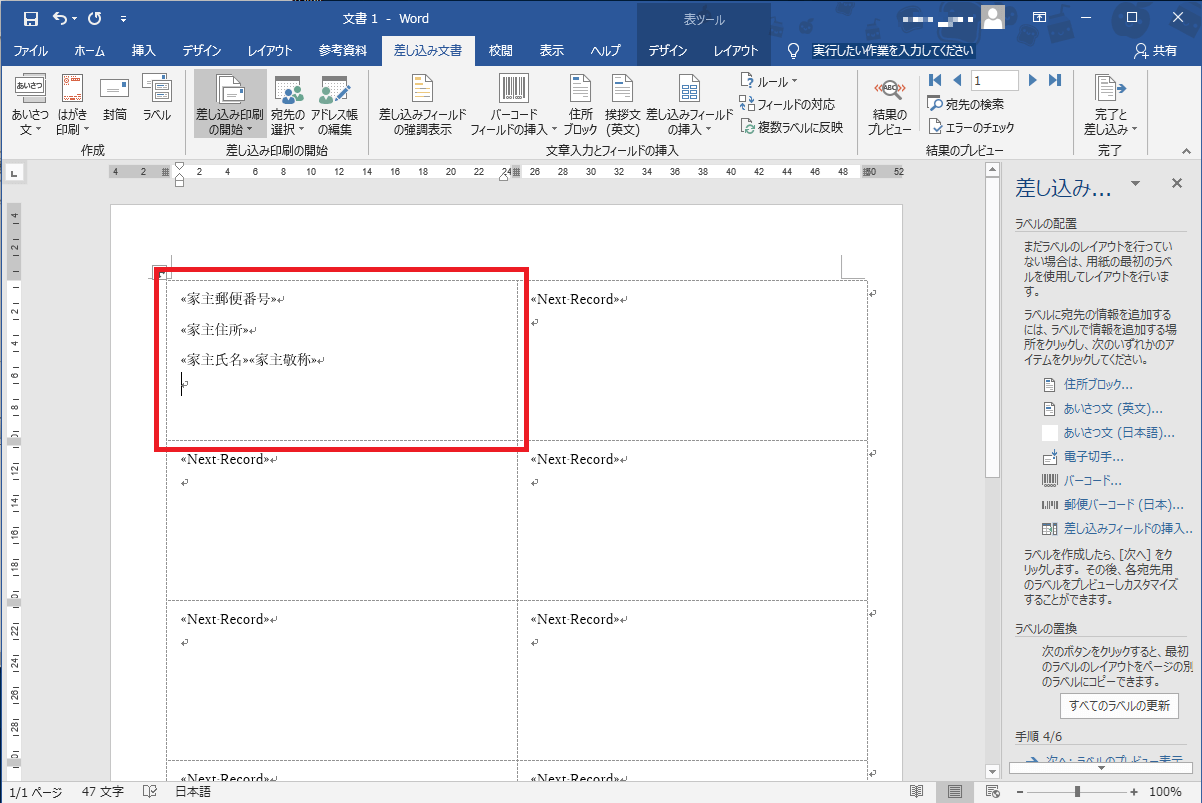 以下の例では、Word の差し込み印刷機能を用いて家主宛てのラベルを作成しています。