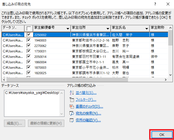 賃貸名人からの出力データを Microsoft Word に取込、宛名ラベル印刷を作成する方法です。