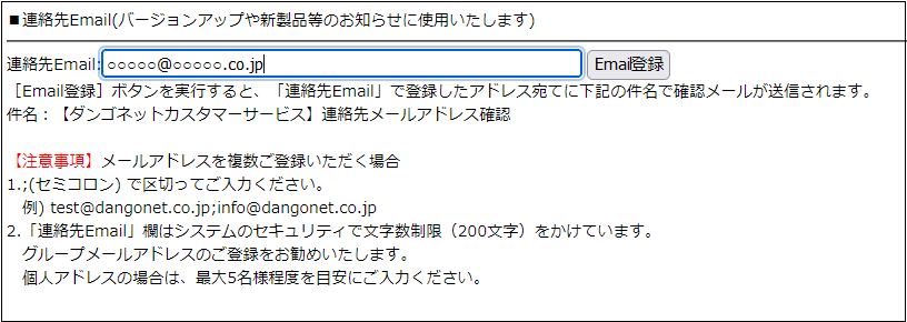 弊社「ダンゴネット カスタマーサービス」の「連絡先Email」欄にメールアドレスをご登録いただくと、バージョンアップ情報等の弊社サービスに関する重要なお知らせをのメールを受け取ることができます。このお知らせを利用することで法令・規範の改正や市町村の合併等の早めのバージョンアップが推奨される事態に素早く対応することができます。
