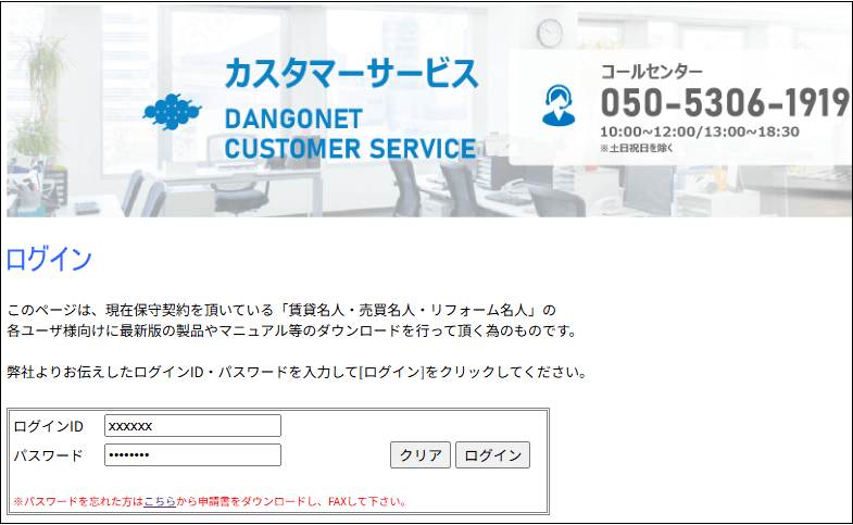 弊社「ダンゴネット カスタマーサービス」のサイトにアクセスし自社のIDとPWでログインします。