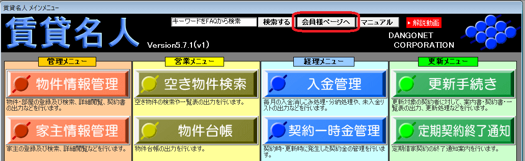 ・[会員様ページへ]ボタン [対象:賃貸名人6.1.2 以下]