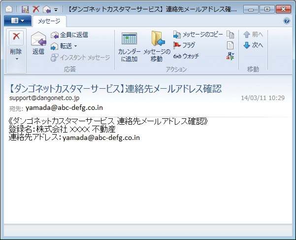 登録したメールアドレス宛てに自動の確認メールが送信されます。