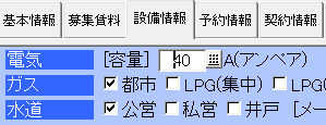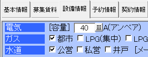 例:ここでは「電気 [ 容量 ] 」欄にカーソルを移動しています。