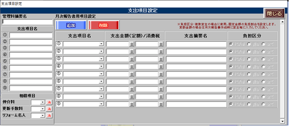 (3)同様に物件情報詳細画面の[基本情報]タブの「支出項目」を開き、任意の欄をクリックします。