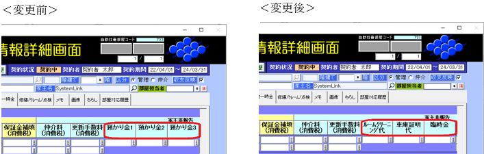 契約一時金レコードの「家主非報告」欄の項目名の表示が変わります。