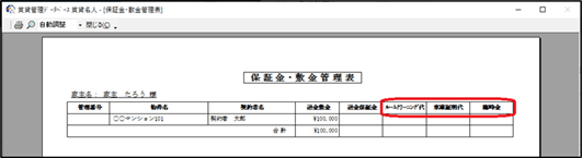 ・帳票「保証金・敷金管理表」