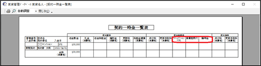契約一時金管理画面に設置の帳票「保証金・敷金管理表」「契約一時金一覧表」の契約一時金項目名の印字が変わります。