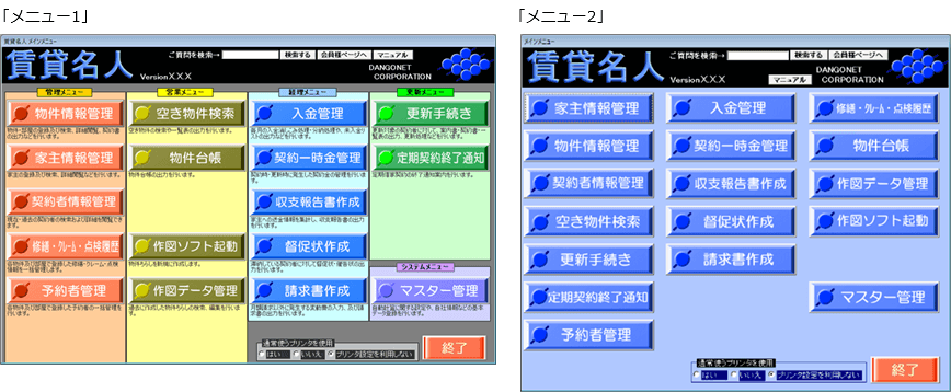 賃貸名人メインメニューが青かったのですが、カラフルな画面に変わりました。何故でしょう。