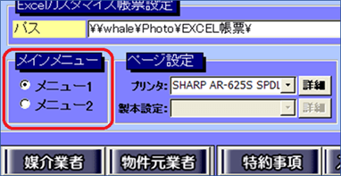 「メニュー1」「メニュー2」のどちらかを選択します。