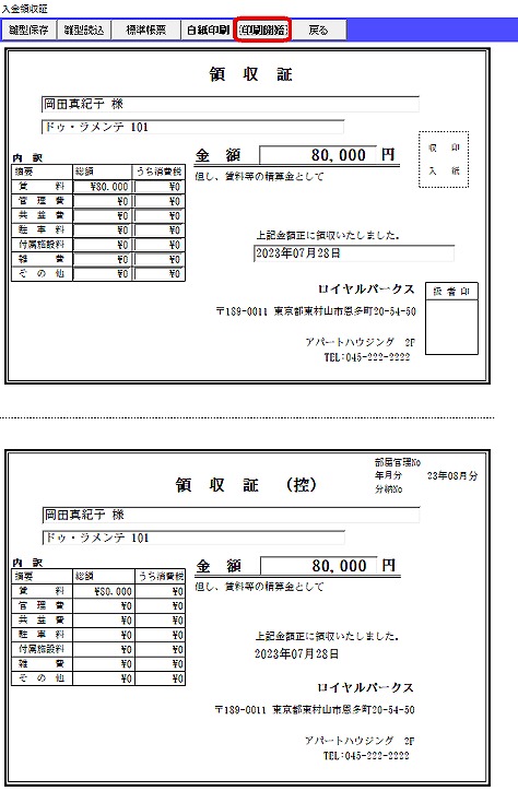 毎月いただく賃料の領収証(領収書)を出力できますか?