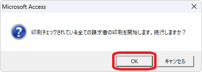 「印刷チェックされている全ての請求書の印刷を開始します。続行しますか?」