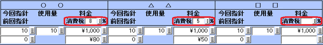 消費税率の変更により経過措置の対象となる項目(電気代、水道料、ガス代)がある場合、消費税を任意の税率に変更してご利用いただけます。