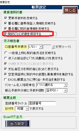 ③[契約ごとに約款を保存する]にチェックを付与し、画面を閉じます。