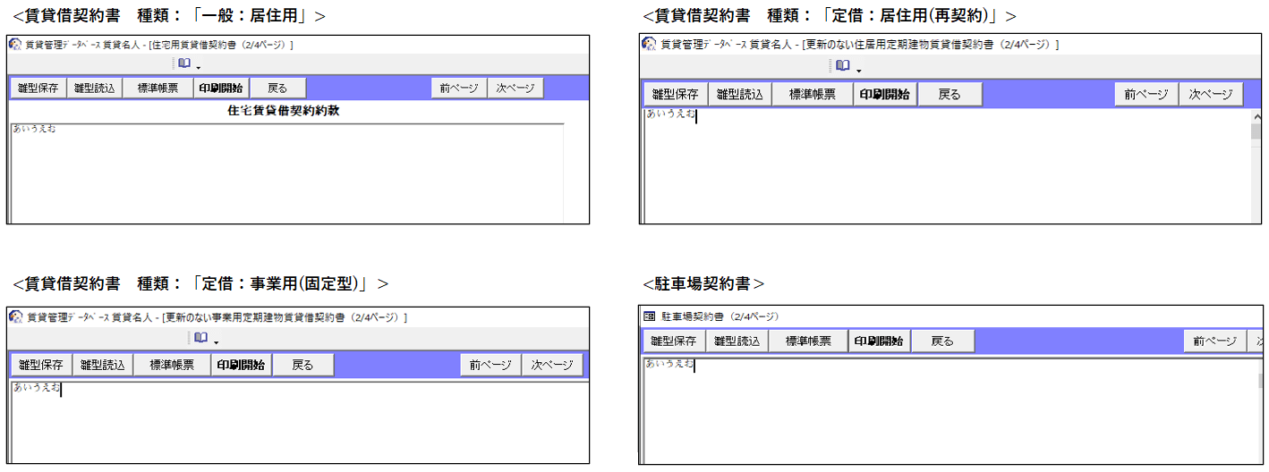 [契約ごとに約款を保存する]をONに設定した場合、賃貸借契約書を開いた際の約款の初期値は白紙です。