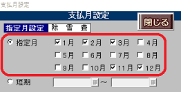 ②支払月の設定を行う項目の「支払月」欄の[▼]ボタンで、「指定」または「短期」を選択します。