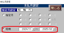 ※支払月設定画面内で、支払月「指定」「短期」の切替操作が可能です。