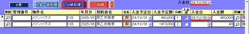 ※当月分の入金額に満たない場合は、分納処理が行われます。
