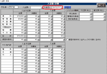 対象画面:入金情報管理画面、ウインドウ「入金額:詳細」 ]