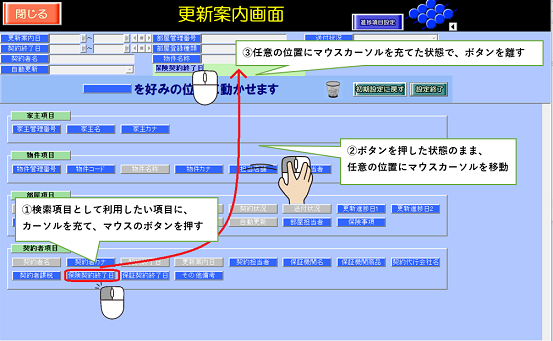 検索項目「保険契約終了日」「保証契約終了日」は、初期設定で表示されていません。利用する場合は、[検索設定]ボタンから検索項目を追加します。