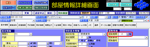 [×]部屋情報詳細画面[契約情報]タブの保険開始日および保険終了日が未入力の場合、新保険開始日・保険終了日は自動計算されません。