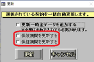 「保険期間」「保証期間」を変更・更新しない場合は、[更新する]チェックを外して更新処理を実施します。