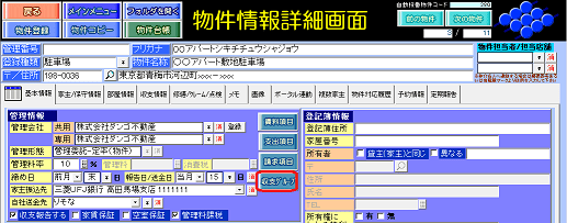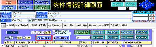 ①子データの物件情報詳細画面[基本情報]タブの[収支グループ]ボタンを開きます。