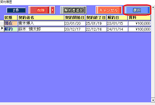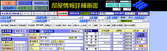 1.部屋情報詳細画面の[契約履歴]ボタンで確認する