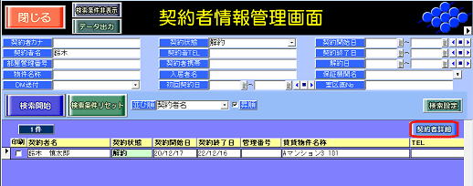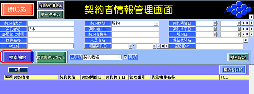 ①契約者情報管理画面を開き、検索条件を指定後に[検索開始]ボタンを押します。
