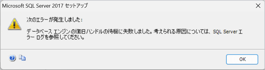 『Microsft SQL Server 2017 セットアップ 【!】次のエラーが発生しました: