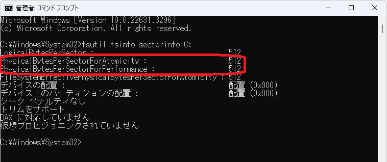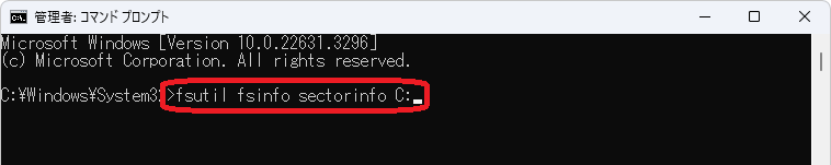 コマンド:fsutil fsinfo sectorinfo C:
