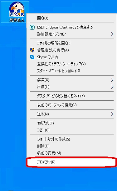 (1)デスクトップにあるソフトのショートカットを右クリックし、プロパティを開きます。
