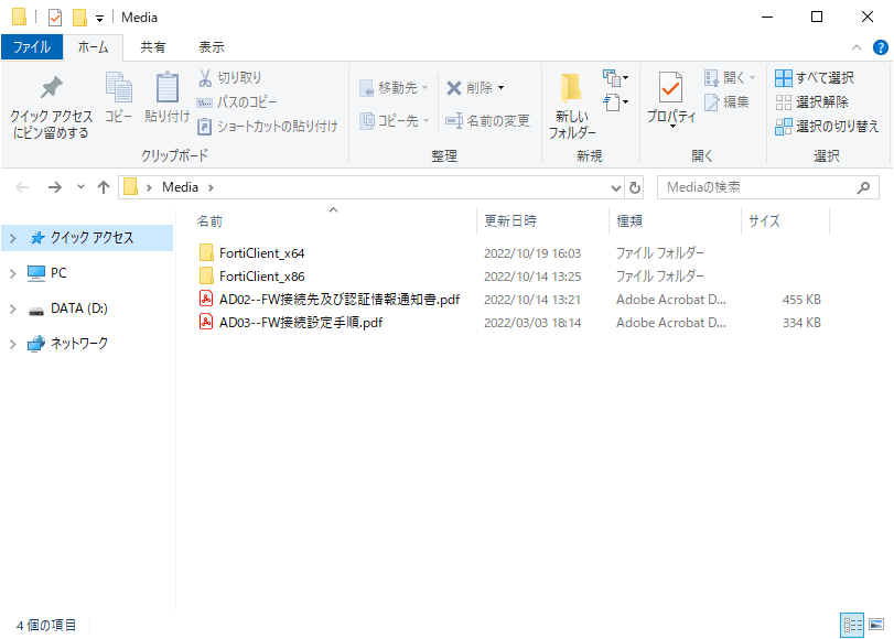 [FortiClient_x64]フォルダは 64bit版 Windowsに対応したインストーラです。(←通常はこちら)