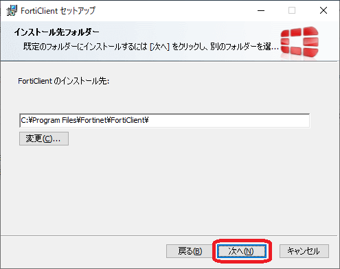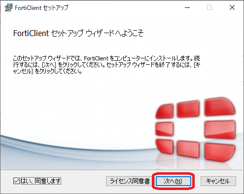 弊社から配布するメディアに同梱されているFortiClient をインストールします。