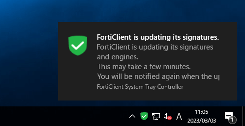 (7)インストールが完了すると自動的にFortiClient のアップデートが始まります。