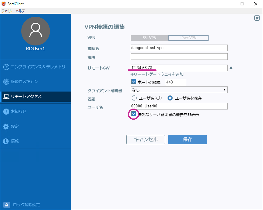 1.ホスト名ではなくIPv4アドレスでリモートGWに接続する