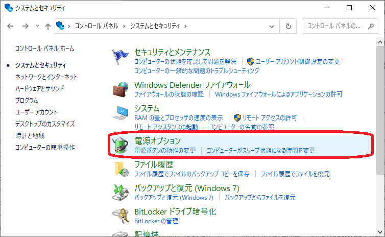 (2)「システムとセキュリティ」を選択します。