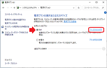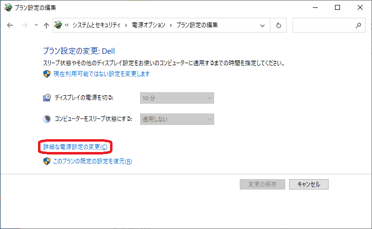 (5)「詳細な電源設定の変更(c)」をクリックすると、「電源オプション」の設定画面が開きます。