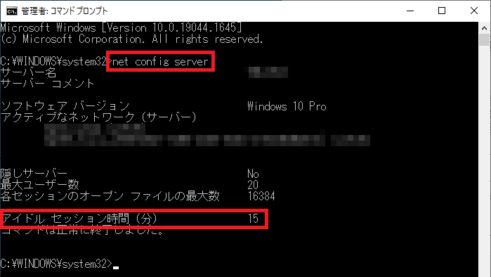 コマンド『net config server /autodisconnect:120』
