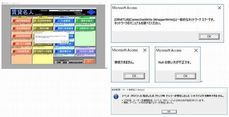 データベースソフト(SQL Server)と、名人シリーズのサーバ機(親機)やクライアント機(子機)との通信が切断された場合、この現象が発生します。