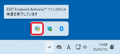 タスクバーの通知領域内(隠れているインジケータを表示)のアイコンで状況確認をしましょう。