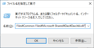 コマンド:regsvr32 "C:\Program Files\Common Files\Microsoft Shared\Dao\Dao360.dll"