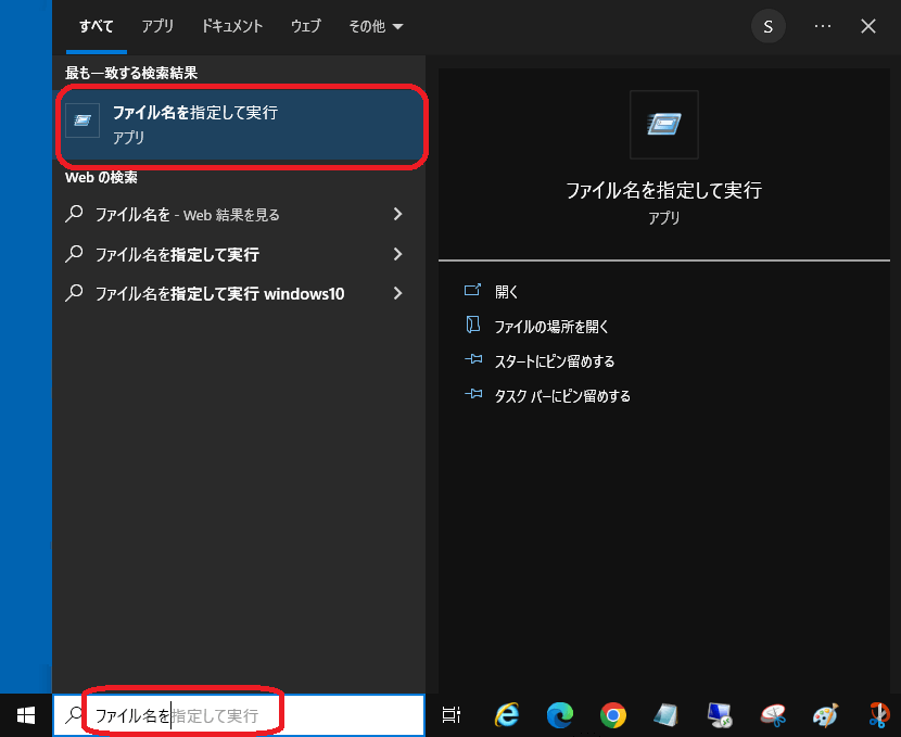 キーボードの[Win]キーと[R]キーを同時押しすると「ファイル名を指定して実行」のウインドウが開きます。スタートの「ここに入力して検索」欄でワード検索して、アプリを起動することもできます。