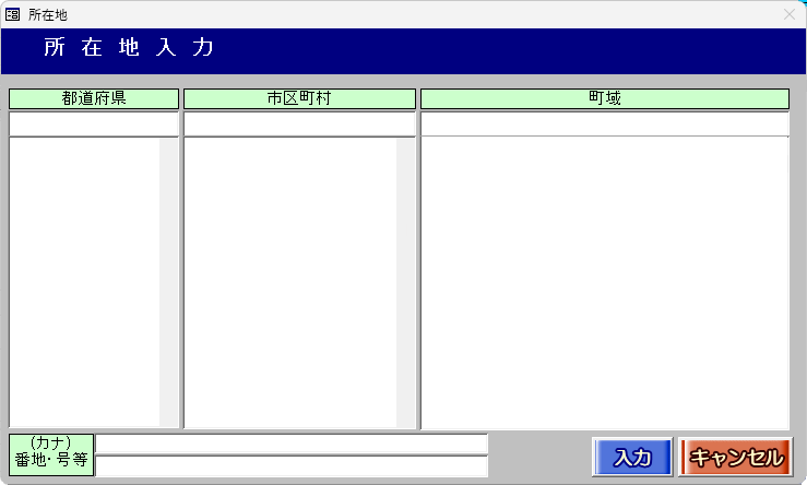 ・所在地入力から住所の登録を行うと、リストが空白(真っ白)で表示されます。