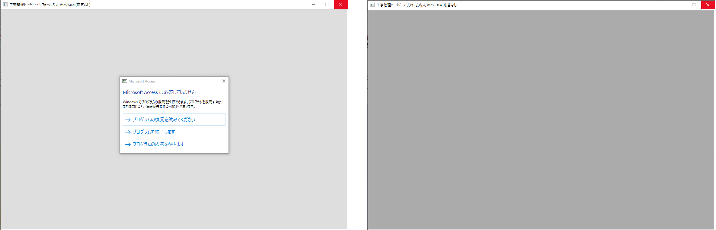 プログラムを復元するか、または閉じると、情報が失われる可能性があります。」