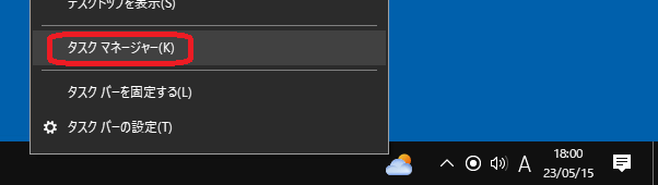 「タスクマネージャ」の起動は、タスクバーの上で右クリックします。