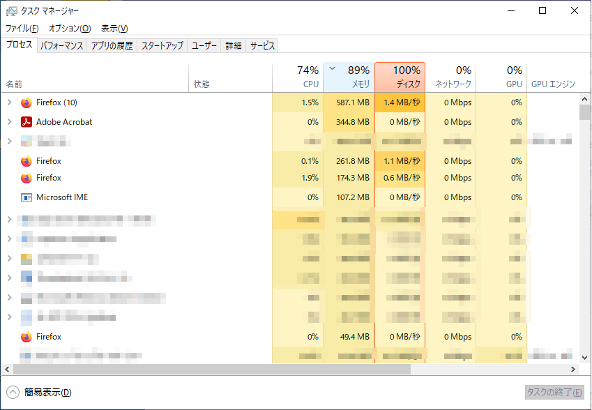・ブラウザ(例:FireFox)のディスクやメモリへの負荷(複数のタブを開いている)