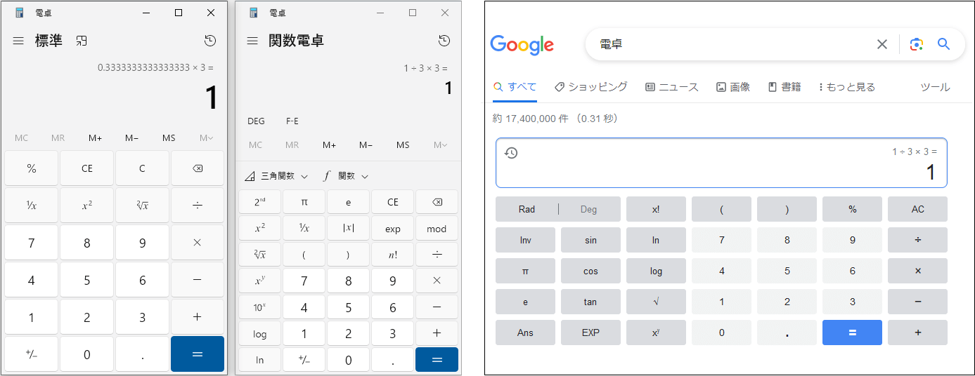 <計算例2>「 1 ÷ 3 × 3 = 」