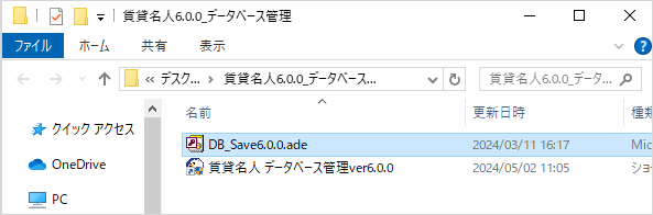 (3)生成されたファイル「DB_Save6.0.0.ade」を、賃貸名人インストールフォルダに設置します。